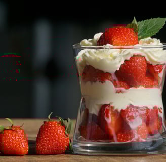 Des fraises fraîches accompagnées d’une onctueuse chantilly maison, pour une douceur légère et estivale.