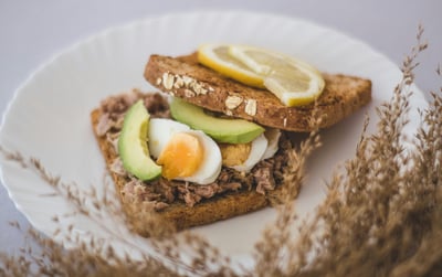 Pain frais avec une généreuse garniture de thon, avocat crémeux et une touche de mayonnaise, pour un mélange parfait de fraîcheur et de saveurs.
